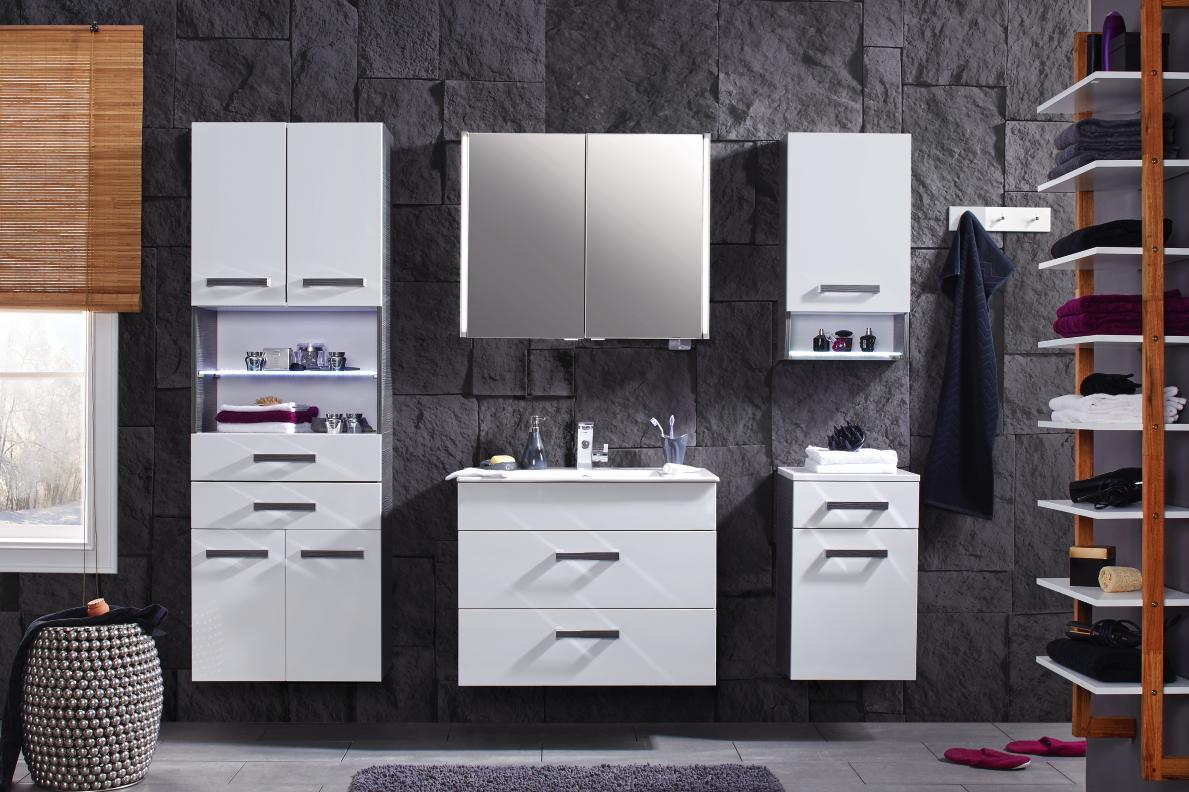 Accessoires für alle lebensbereiche modische. Mit hochschrank unterschrank hängeschrank und spiegelschrank sollte aber genug platz für alle ihre badutensilien sein. Badmöbel komplettset in weiß hochglanz anthrazit modern 5 teilig versandkostenfrei.